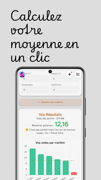 L’application calcule automatiquement les moyennes et génère des rapports détaillés pour suivre la progression scolaire.